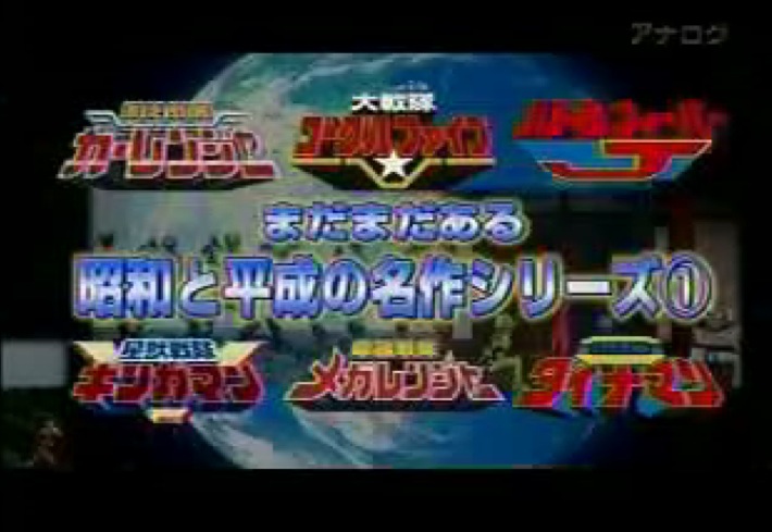 Basically there are two hosts (I don't recognize)--a man and a woman. They are surrounded by Red ranger figures and posters of Gosei vs Shinken in the back. It is clips of a show, then back to hosts. Some don't make sense how they clumped them together. The series are not by order, some are.